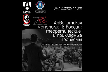 4 декабря Юридический факультет ГАУГН приглашает на Всероссийскую конференцию «Адвокатская монополия в России: теоретические и прикладные аспекты».