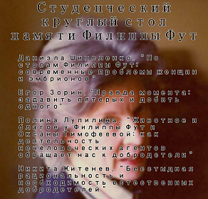 15 ноября на Философском факультете ГАУГН состоится студенческий круглый стол, посвящённый Филиппе Фут.
