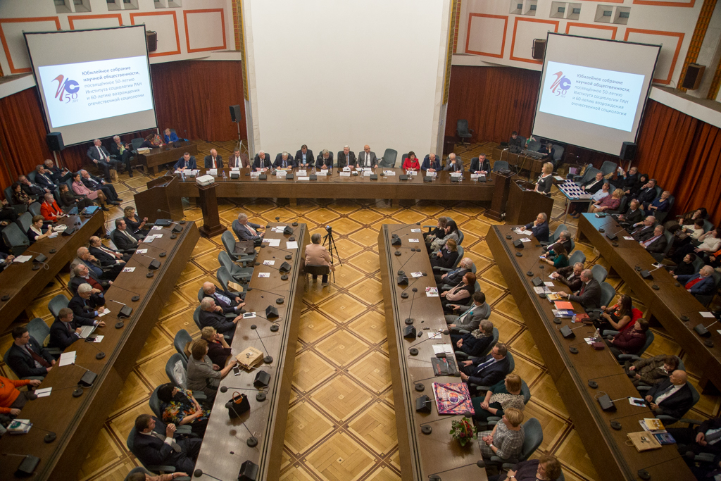 Гостями мероприятия стали представители научной общественности, лидеры российской социологической науки, государственные и общественные деятели, представители российских регионов и СМИ. Директор ФНИСЦ РАН декан социологического факультета ГАУГН, академик РАН М. К. Горшков выступил с научным докладом «Институт социологии: 50 лет изучая общество, жизненные интересы и ценности людей». Советник президента РФ по вопросам региональной экономической интеграции, академик РАН С. Ю. Глазьев зачитал собравшимся поздравление от Президента РФ В. В. Путина и лично от себя поздравил присутствующих со знаменательной датой. Глава Комитета Совета Федерации по науке, образованию и культуре Л. С. Гумерова приветствовала участников собрания от имени председателя верхней палаты Совета Федерации РФ В. И. Матвиенко.
