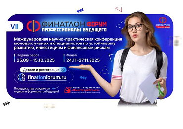 Приглашаем принять участие в VII Международной научно-практической конференции Финатлон – форум профессионалов будущего, который объединяет молодых ученых и специалистов, обсуждающих устойчивое развитие, инвестиции и финансовые риски.