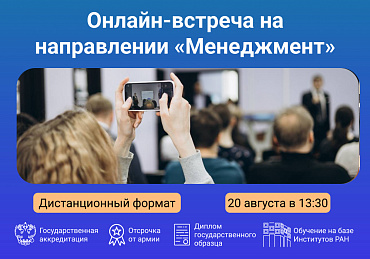 20 августа в 13:30 состоится онлайн-встреча с представителями направления «Менеджмент» Экономического факультета ГАУГН.