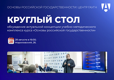 28 августа в 16:00 на базе ОМЦ ГАУГН пройдет Круглый стол, посвященный обсуждению актуальной концепции учебно-методического комплекса курса «Основы российской государственности».
