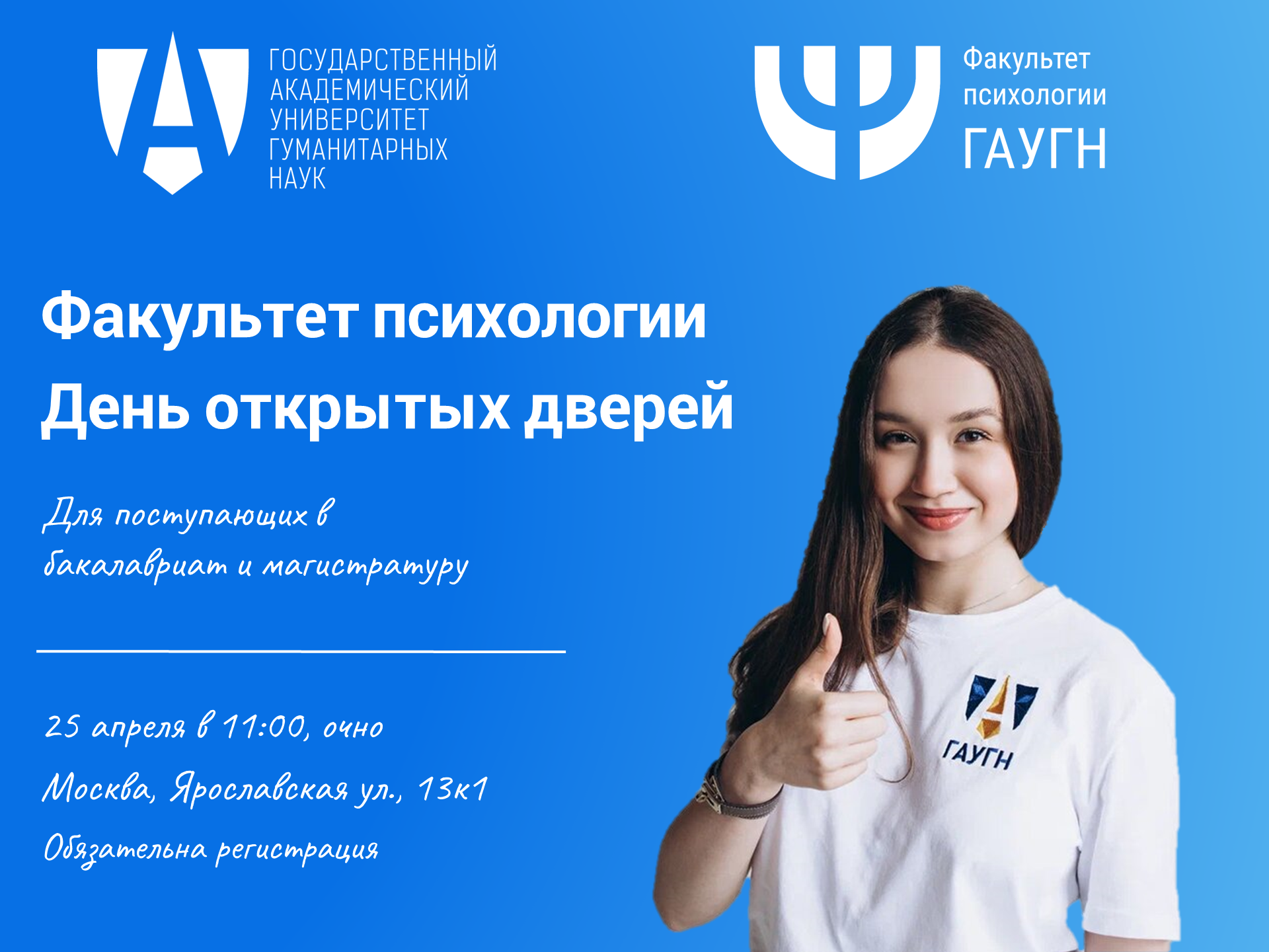 Регистрация и расписание следующих дней открытых дверей по ссылке: https://gaugn.ru/forentrant/opendays/shedule_new/psy/