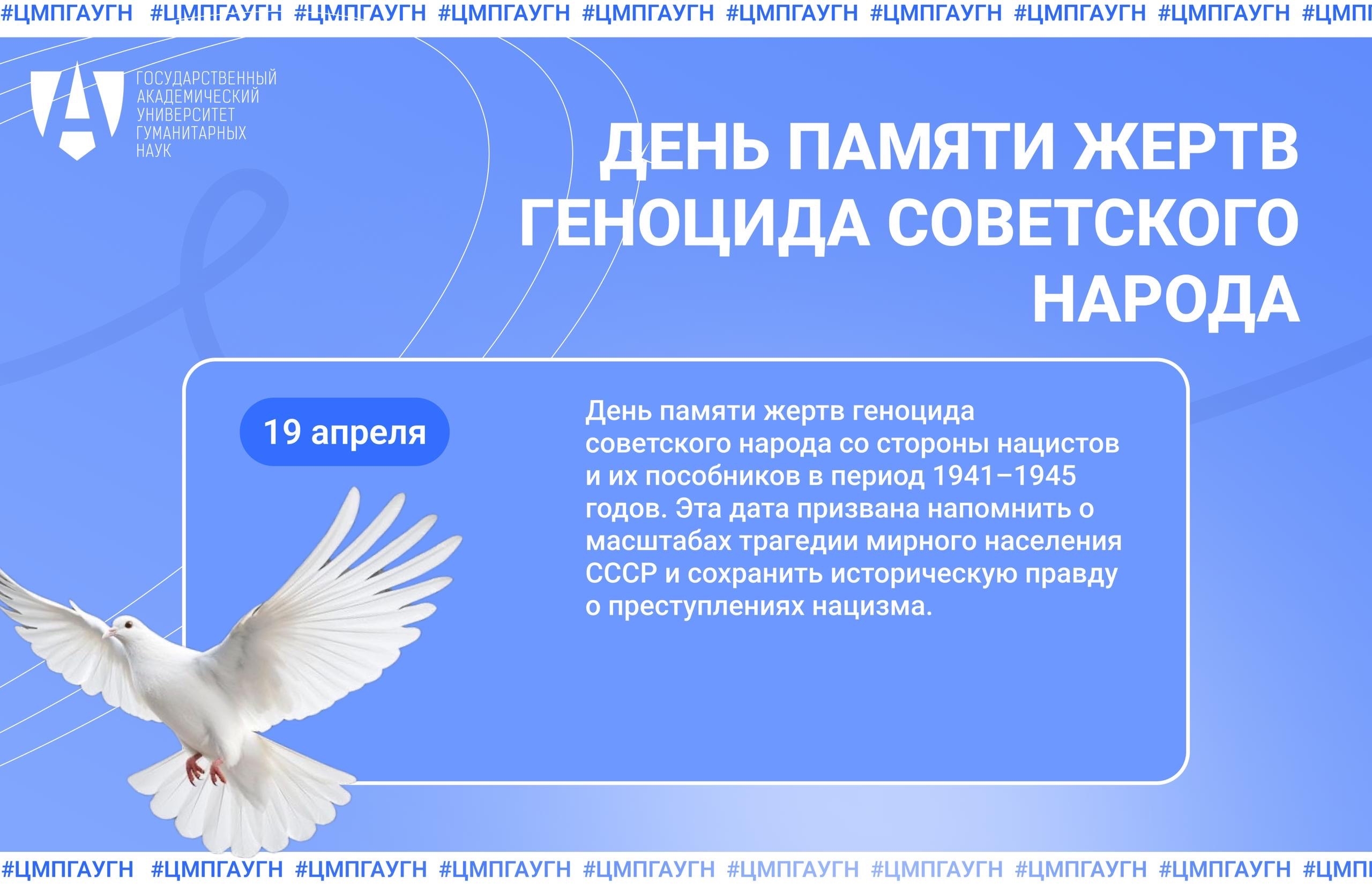 Эта дата призвана напомнить о масштабах трагедии мирного населения СССР и сохранить историческую правду о преступлениях нацизма.