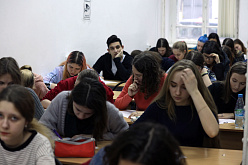 Участники под диктовку записывали текст о знаменитой экспедиции в Антарктиду, в которой принял участие профессор КФУ Иван Симонов. Диктант получился интересным и познавательным, стоит отметить доступный уровень лексики, тем более правильное написание названий и фамилий было заранее предоставлено организаторами. Аудитория была полностью заполнена студентами, а сами они живо и уверенно выполняли задание, что говорит о вовлеченности ребят в изучение языка.