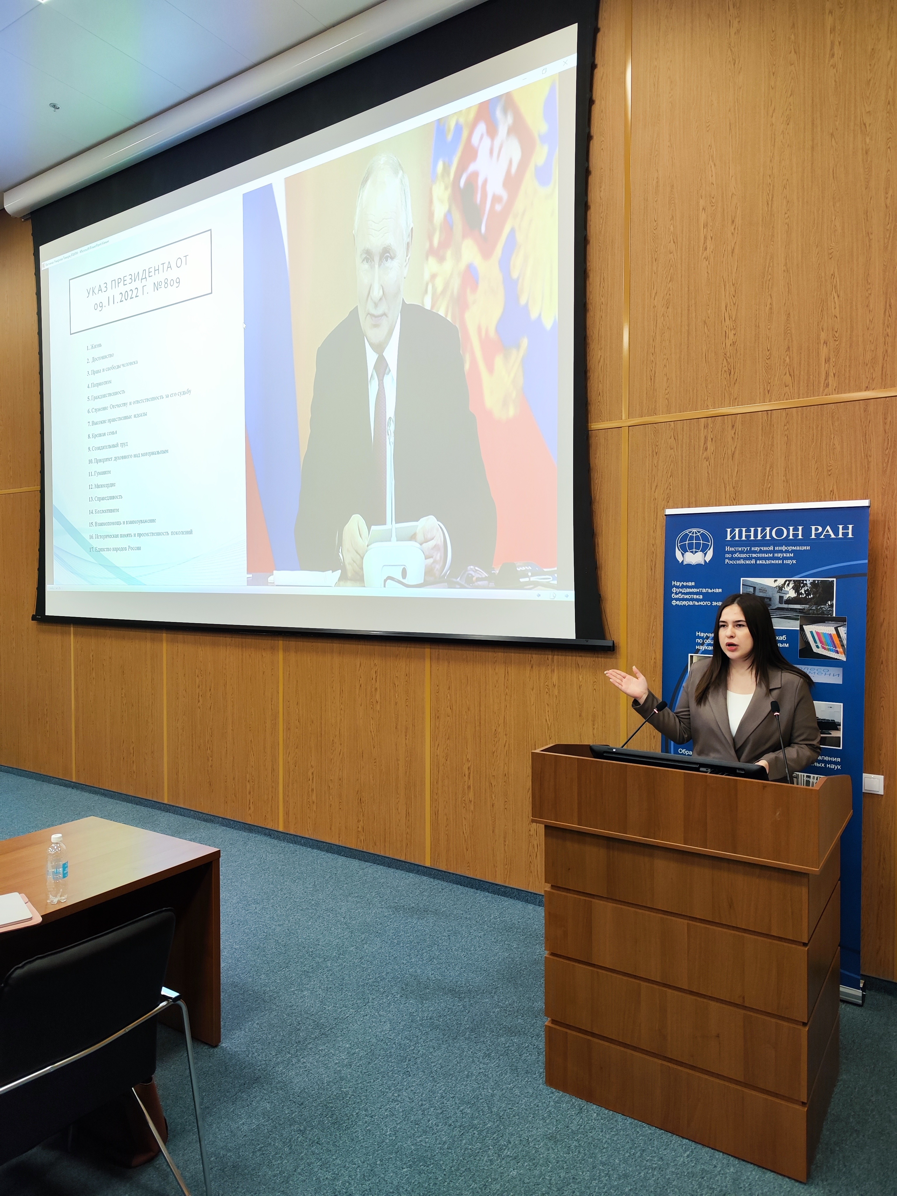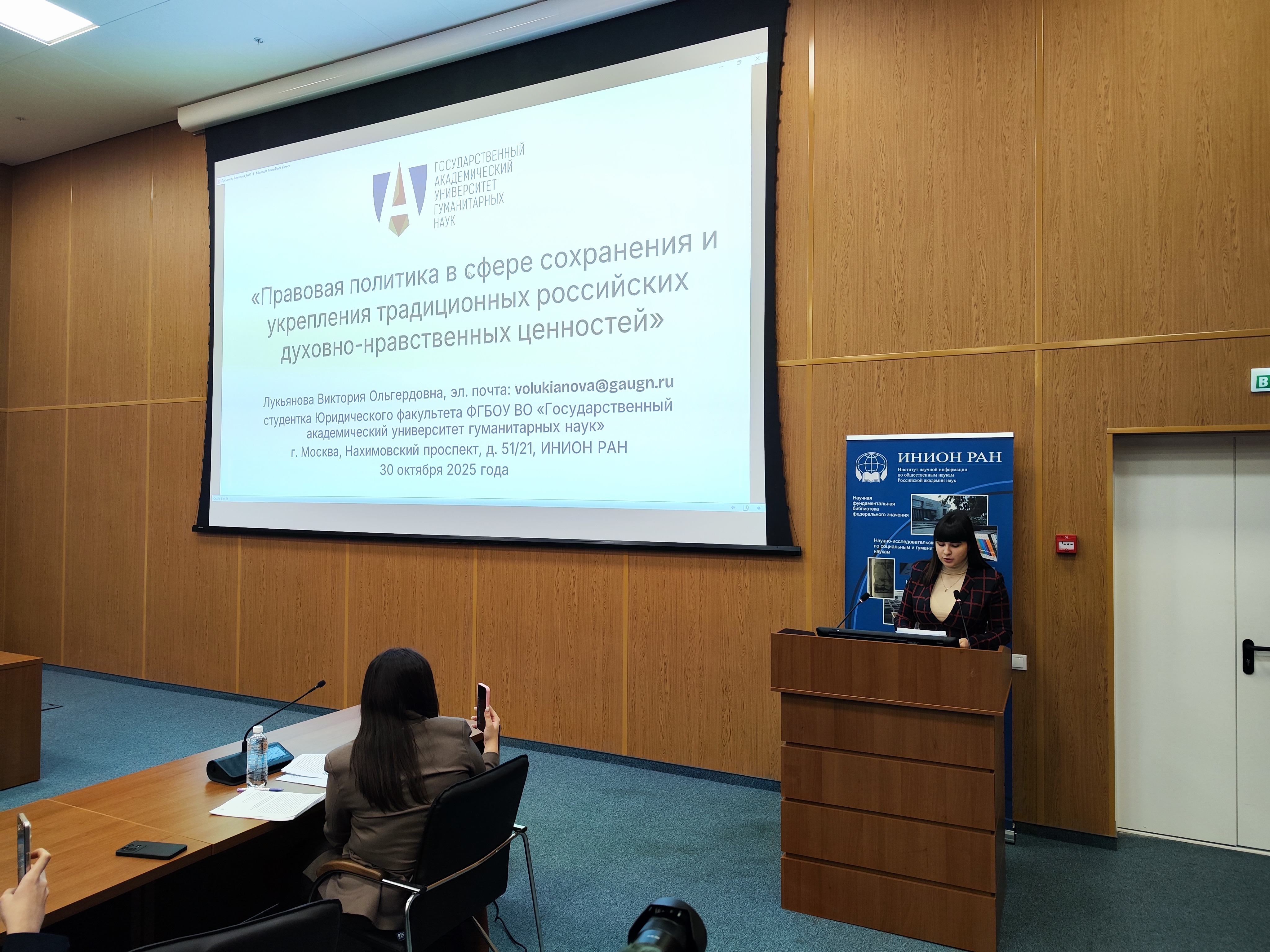 3. Виктория Лукьянова на тему «Правовая политика в сфере сохранения и укрепления традиционных российских духовно нравственных ценностей». Автор посвятил свой доклад всестороннему анализу государственной политики, направленной на сохранение и укрепление традиционных российских духовно нравственных ценностей, а также оценке её реализации.