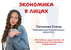 Елена Логинова: Внеучебная активность университета очень интересная, наблюдаю за многими отделениями универа. Но пока что принять участие не удалось. В пространстве Экономического факультета нравится всё, не могу выделить что-то отдельное.