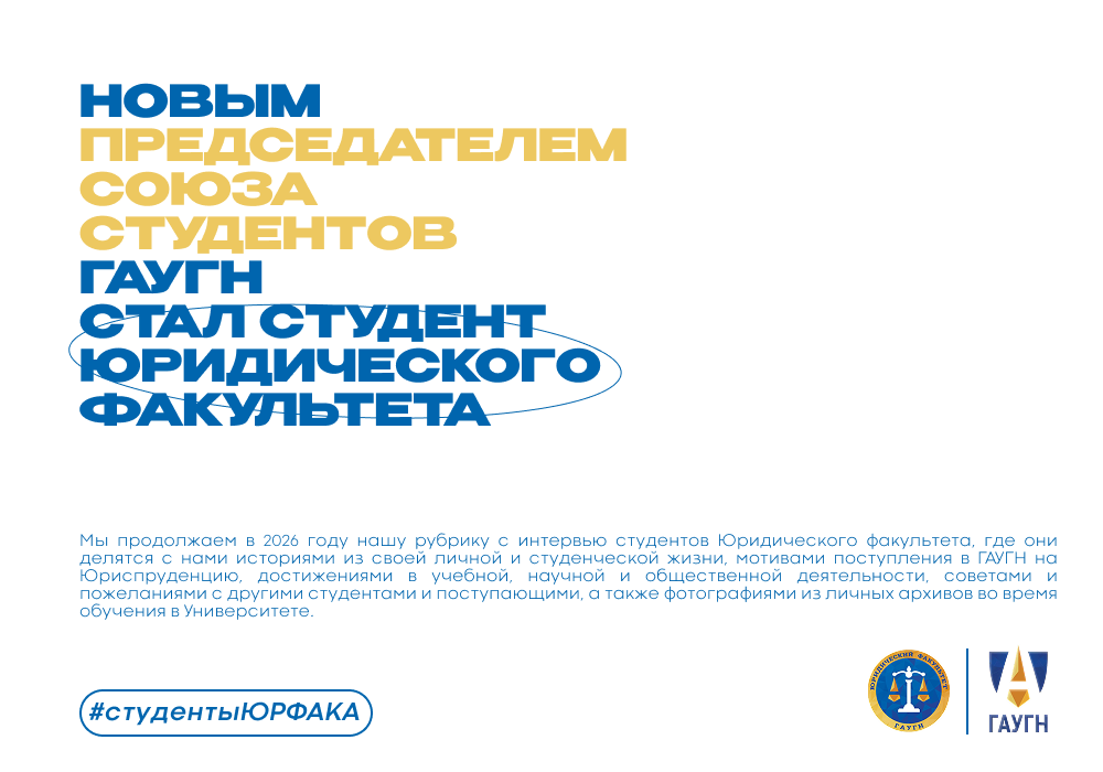 Мы продолжаем в 2026 году нашу рубрику с интервью студентов Юридического факультета, где они делятся с нами историями из своей личной и студенческой жизни, мотивами поступления в ГАУГН на Юриспруденцию, достижениями в учебной, научной и общественной деятельности, советами и пожеланиями с другими студентами и поступающими, а также фотографиями из личных архивов во время обучения в Университете.