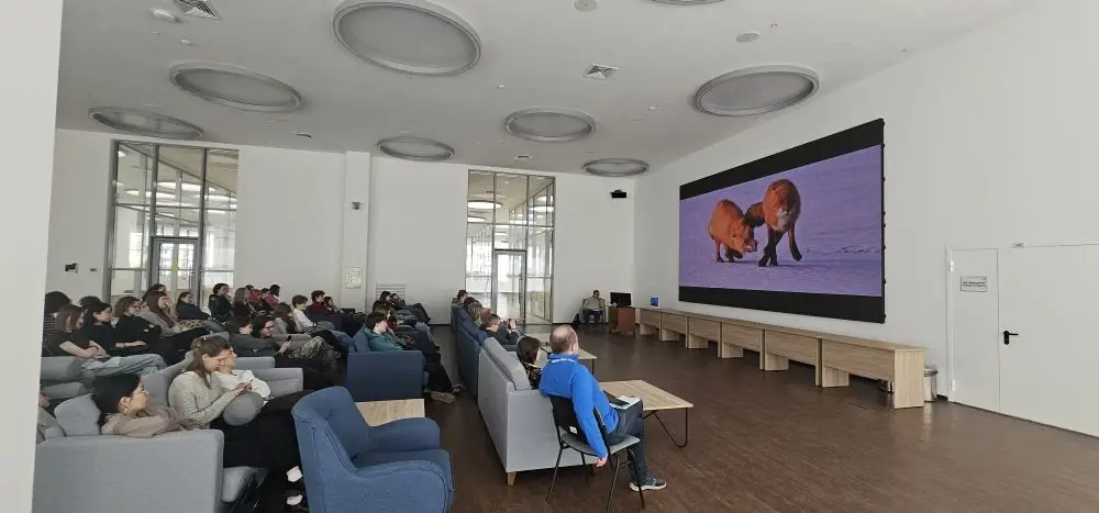 После просмотра состоялось обсуждение киноленты с российским зоологом, охотоведом, журналистом и писателем Михаилом Кречмаром.