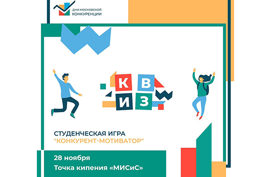 28 ноября в «Точке кипения» МИСиС будет проходить студенческий квиз на тему конкуренции «Конкурент-мотиватор», в рамках которого студенческие команды смогут посоревноваться за звание самой сообразительной. В игре участники получат шанс не только блеснуть своими познаниями в области экономики, но и продемонстрировать умение решать ежедневные задачи, логику и чувство юмора.
