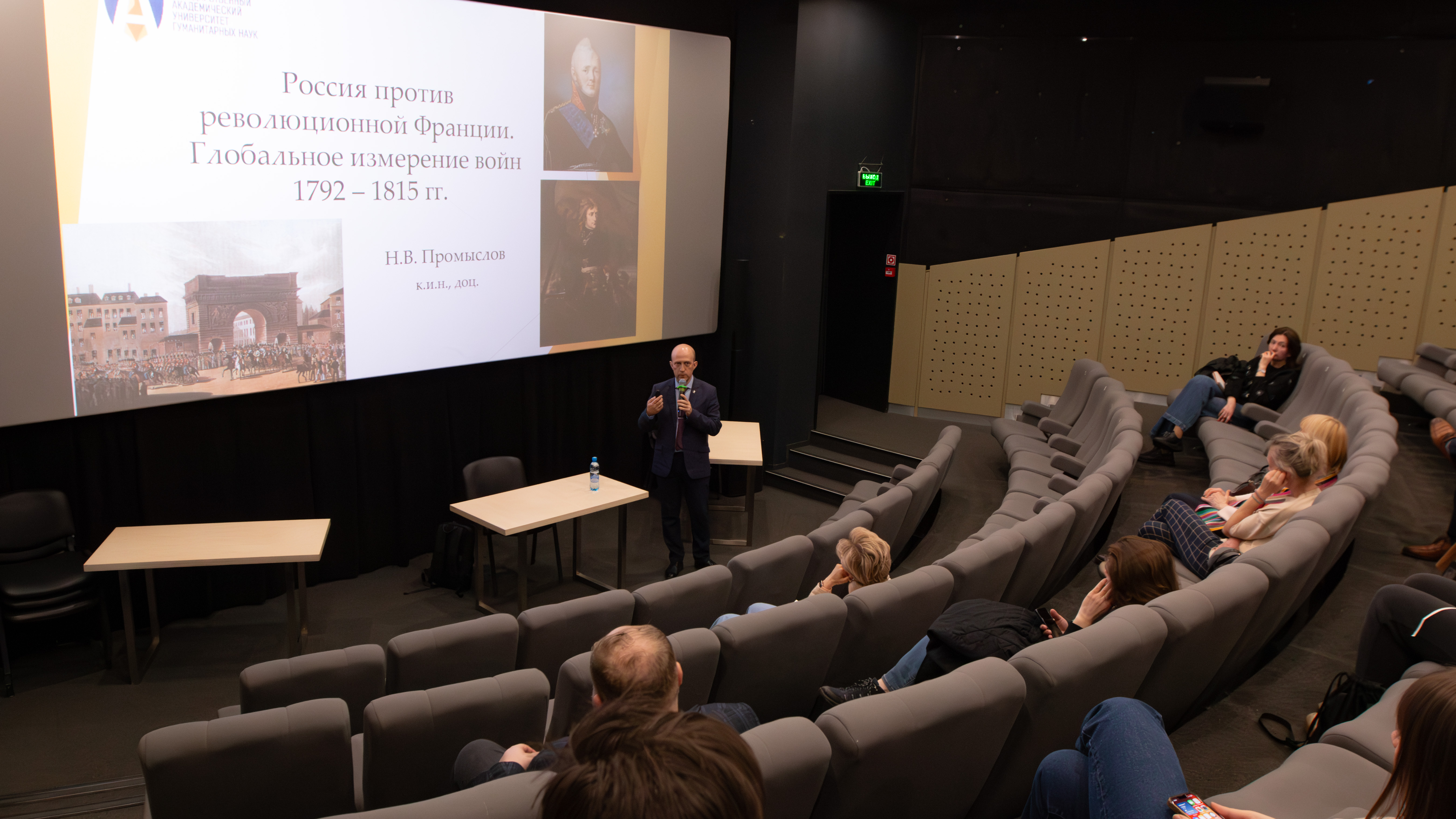 14 мая в стенах Музея Москвы состоялась лекция исполняющего обязанности ректора Государственного академического университета гуманитарных наук, кандидата исторических наук Николая Промыслова «Россия против революционной Франции. Глобальное измерение войн 1792–1815 годов». Мероприятие прошло в рамках образовательной программы «Москвоведческий лекторий», организованного параллельно с экспозицией «История Москвы».