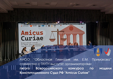 Сотрудничество между ГАУГН и Гимназией им. Е.М. Примакова, начатое в 2025 году на базе подписанного соглашения, продолжится и в 2026 году. Одним из флагманских мероприятий является Всероссийский конкурс по модели Конституционного Суда РФ среди школьников «Amicus Curiae». В 2026 году Конкурс состоится уже в пятый раз!