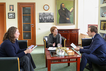 Состоялась рабочая встреча президента Федеральной палаты адвокатов РФ Светланы Володиной и доцента Центра практической юриспруденции и цифровых компетенций Юридического факультета ГАУГН Олега Волченко.