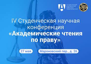 27 мая Юридический факультет ГАУГН и Студенческий научный клуб Факультета проводят IV Студенческую научную конференцию «Академические чтения по праву в ГАУГН».