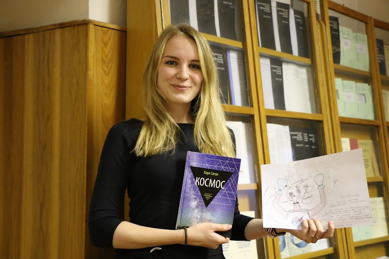 Слушатели проявили креативность в изображении своей версии марсохода, а за самый оригинальный рисунок (Марсоход-шпион) мы подарили Гришаевой Маргарите книгу Карла Сагана "Космос".