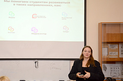 Эвелина Туоми представила структуру Союза студентов ГАУГН и пригласила студентов вступить в органы студенческого самоуправления, различные студенческие клубы и сообщества, а также познакомила с крупными студенческими проектами, которые организуют и ведут студенты ГАУГН.