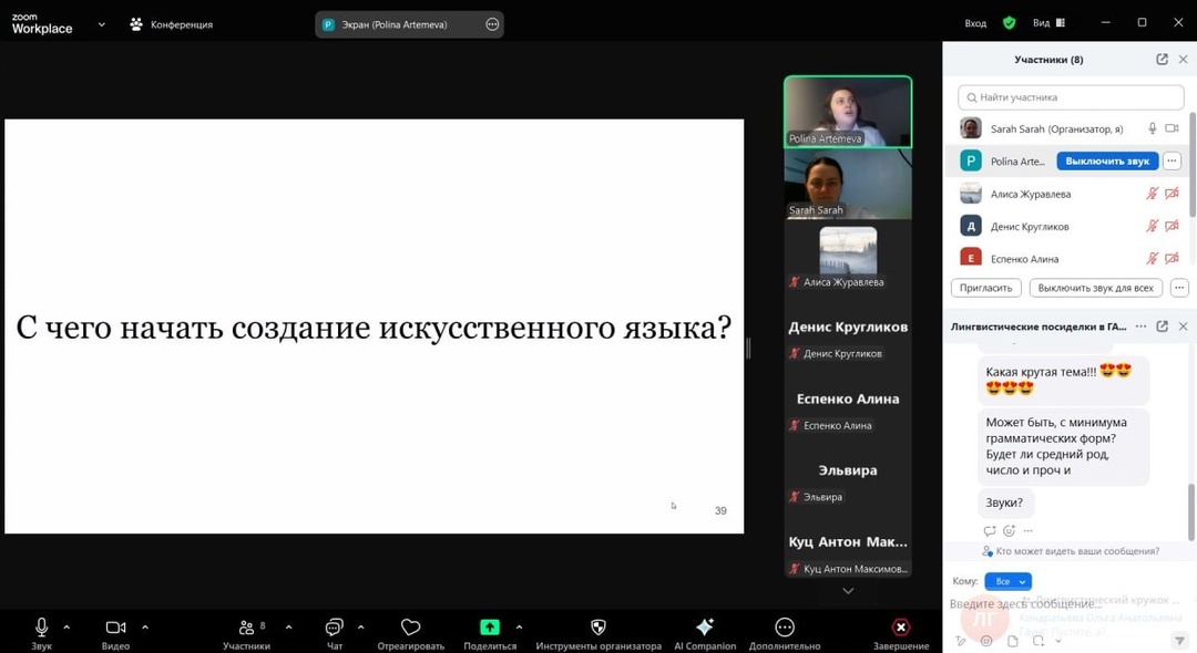 После теоретической части участники Кружка вместе со старшим преподавателем Филологического факультета Сарой Задыкян решили лингвистическую задачу на алеутский пиджин, заметив, как интересно в него были заимствованы русские суффиксы и как алеутские корни стали добавлять русские местоимения в качестве личных окончаний!