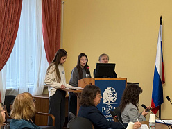 В качестве ее содокладчиков выступили студентки 3 курса Филологического факультета Диана Сарновская и Зарина Хабибова.