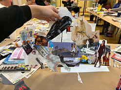 Читая и вдохновляясь графическим романом Изабель Гринберг, студенты ГАУГН вместе с другими участниками клуба создавали свои арт-работы: рисунки, коллажи, комиксы, чтобы затем превратить их в зины — в маленькие авторские журналы.