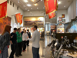 В ходе экскурсии первокурсники познакомились с основными событиями в годы Великой Отечественной войны. Студенты с интересом погрузились в историю военных лет и познакомились с историей жизни и борьбы советского народа в тяжелые военные годы, а также увидели боевые и трофейные знамена, документы, фотографии, фронтовые письма, оружие, награды, личные вещи солдат, офицеров и прославленных военачальников.