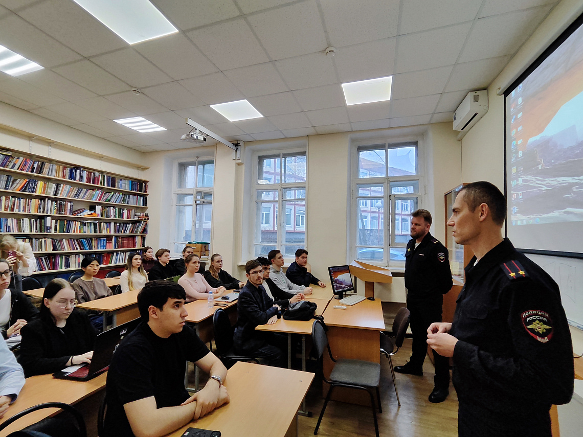 В ходе встречи студенты узнали об актуальном состоянии уровня преступности, наиболее часто совершаемых преступлениях на транспорте, а также в сферах экономики и финансов, информационной, общественной и государственной безопасности, о мерах противодействия лицам, подстрекающим к совершению преступлений.