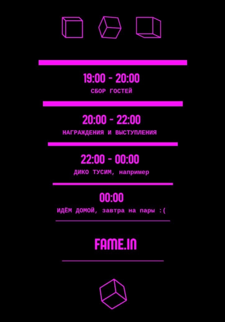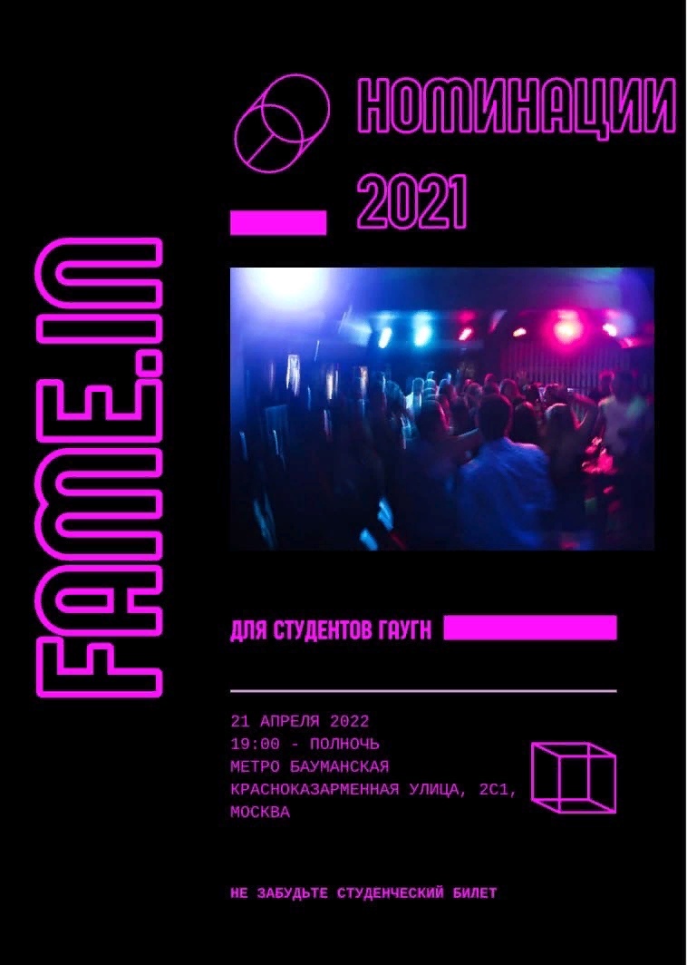 Уже 21 апреля 2022 года состоится культурно-развлекательный вечер «FAME.IN». Мероприятие стало одним из победителей конкурса студенческих инициатив «Поколение-А». Принять участие приглашаются все студенты и сотрудники ГАУГН.