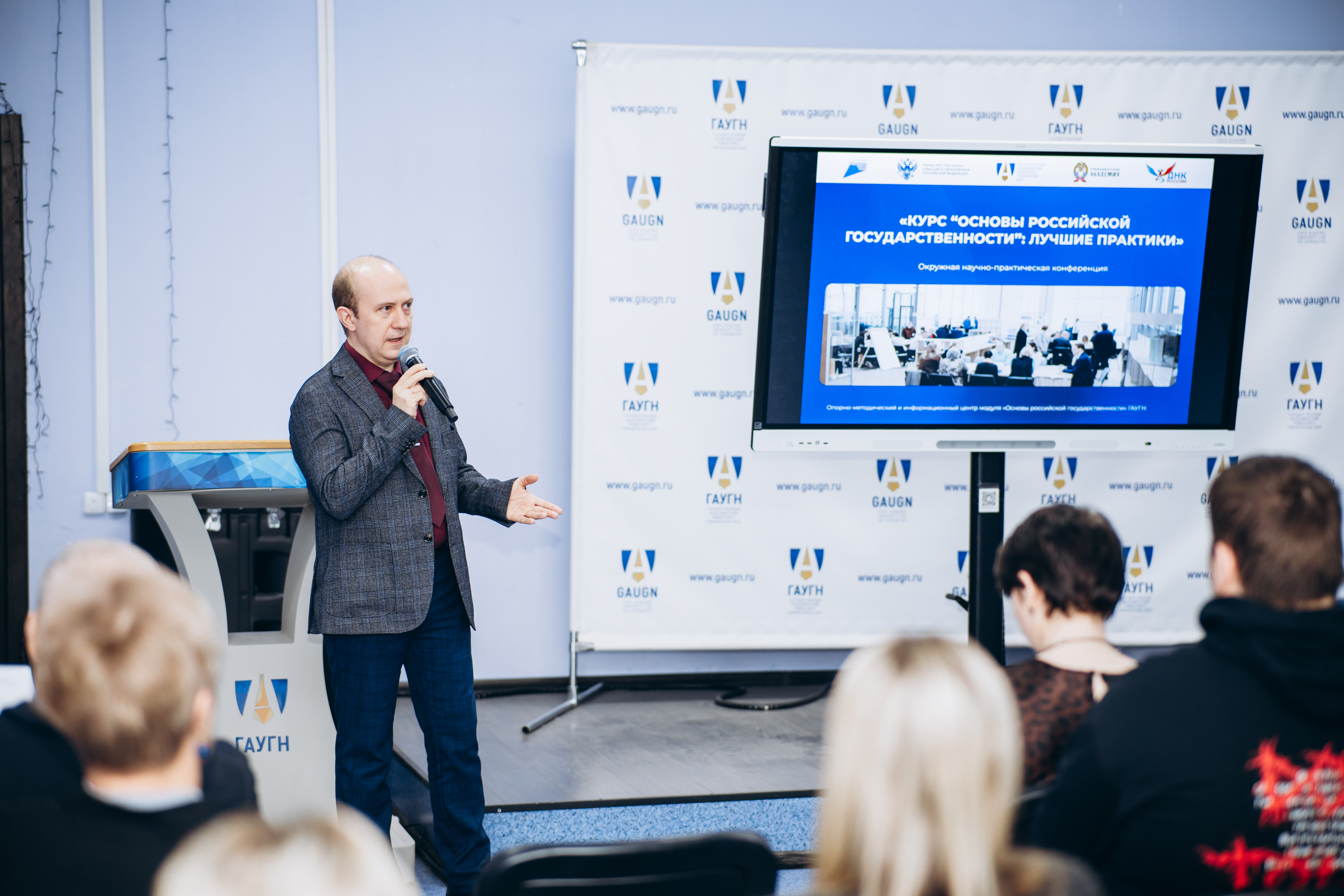 Участников конференции также приветствовал ректор ГАУГН Николай Промыслов. Во вступительном слове он отметил, что за три года вокруг курса сформировалось профессиональное сообщество преподавателей, которое активно обменивается лучшими практиками и совместно работает над развитием дисциплины. По его словам, курс «Основы российской государственности» состоялся как важный элемент образовательного процесса, теперь необходима дальнейшая содержательная и методическая поддержка дисциплины с учетом модернизации высшего образования, изменений студенческой аудитории и задач воспитательной работы.