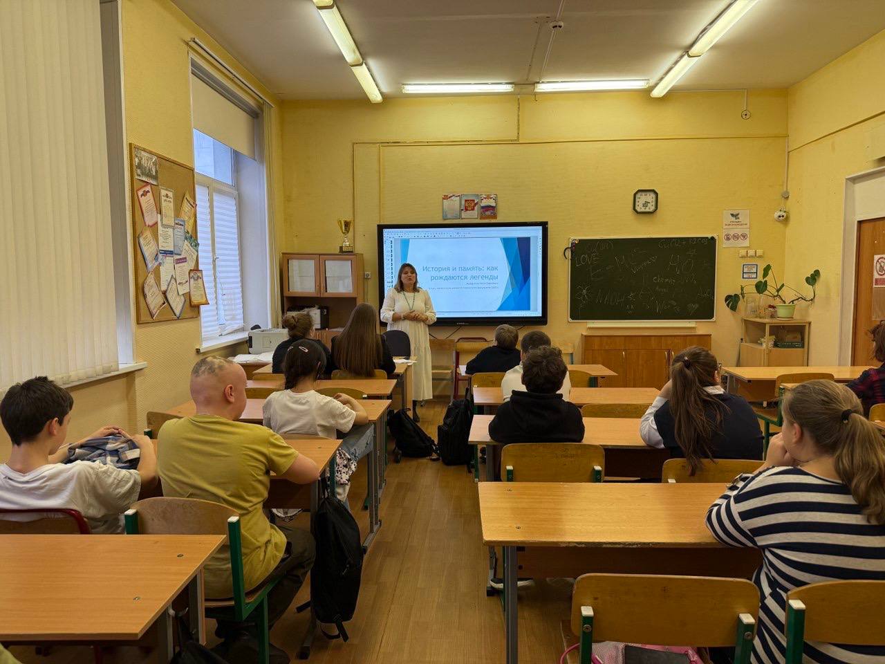 Заместитель декана Исторического факультета, исполнительный директор Ассоциации учителей истории и обществознания Анастасия Майер провела открытую дискуссию «Историческая память, мифы и легенды в истории России и Москвы», в рамках которого обсудила с ребятами, как исторические факты в памяти народов России трансформируются в историческую память, где, как и почем возникают легенды и мифы об отечественной истории.