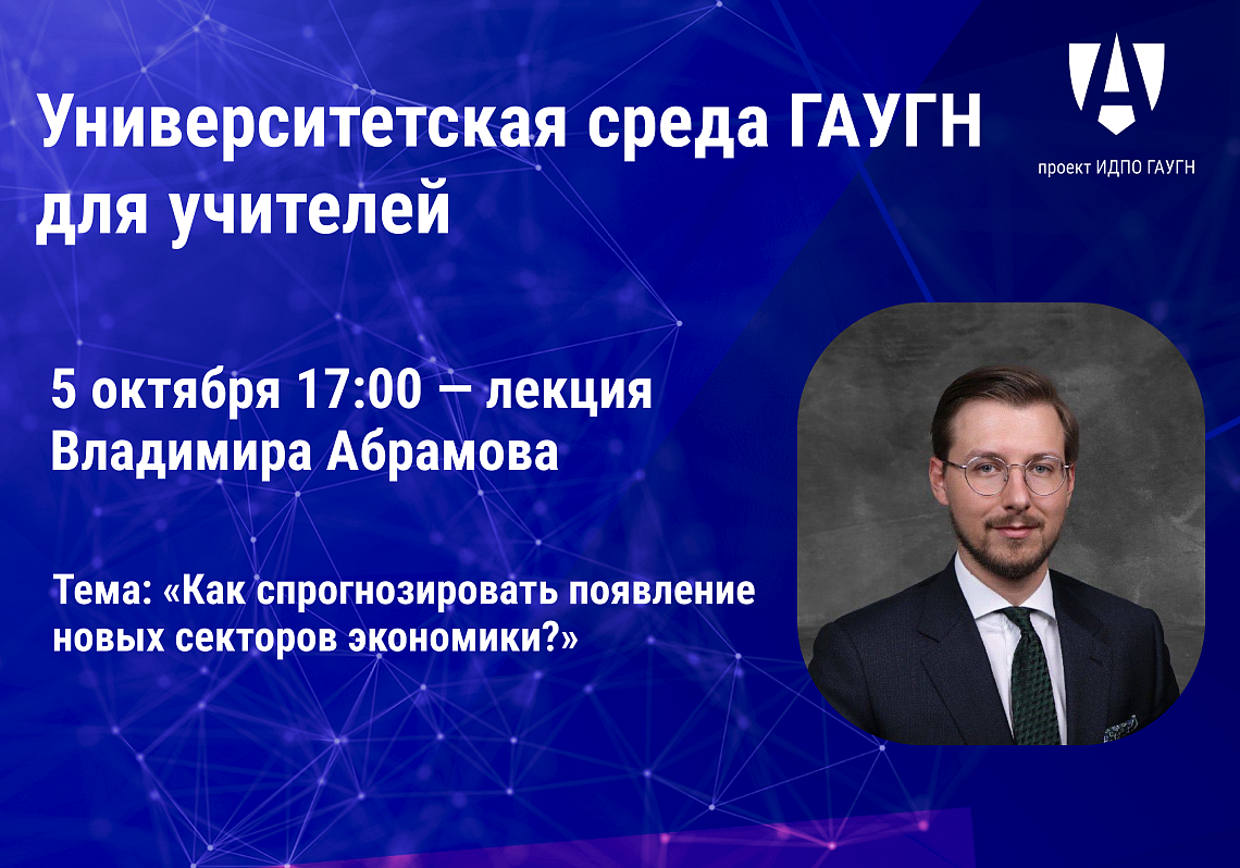 Директор научно-методического центра управления образованием ООО «Мобильное электронное образование», выпускник Экономического факультета ГАУГН Владимир Абрамов проведет семинар на тему «Как спрогнозировать появление новых секторов экономики?».
