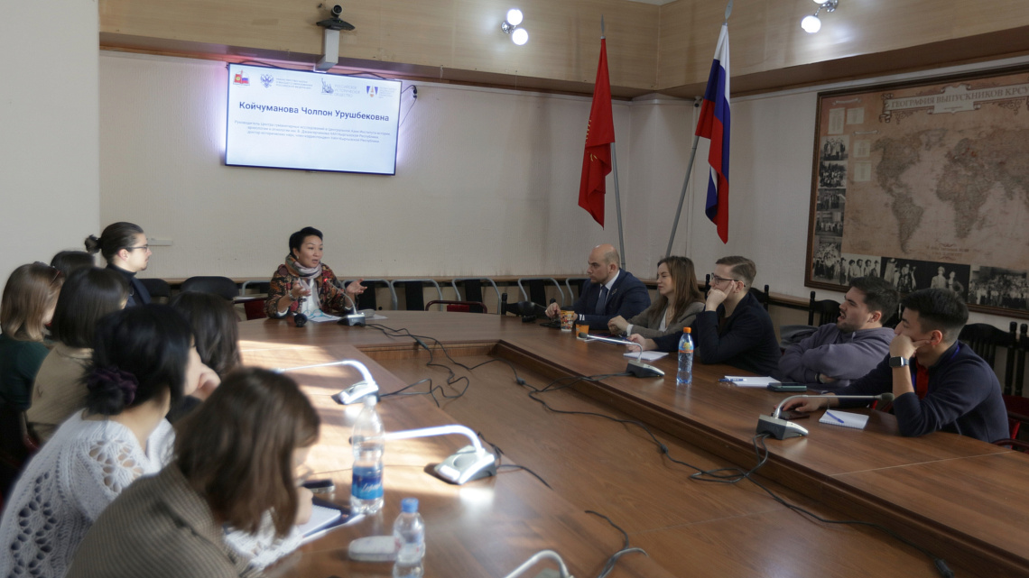 Руководитель Центра гуманитарных исследований в Центральной Азии Института истории, археологии и этнологии имени Б. Джамгерчинова член-корреспондент Национальной академии наук Кыргызской Республики Чолпон Койчуманова выступила перед участниками с лекцией на тему «Кыргызстан и Россия: история и современность». Спикер осветила историю движения басмачей в Кыргызстане, рассказала о присоединении Туркестана к Российской империи, политике центральных властей по отношению к местному населению и о том, как на нее повлияла приверженность к кочевому образу жизни. Особое внимание лектор уделила различиям управленческих решений имперского и советского периодов. Лектор отметила, что установление советской власти положительно сказалось на качестве жизни кыргызов.