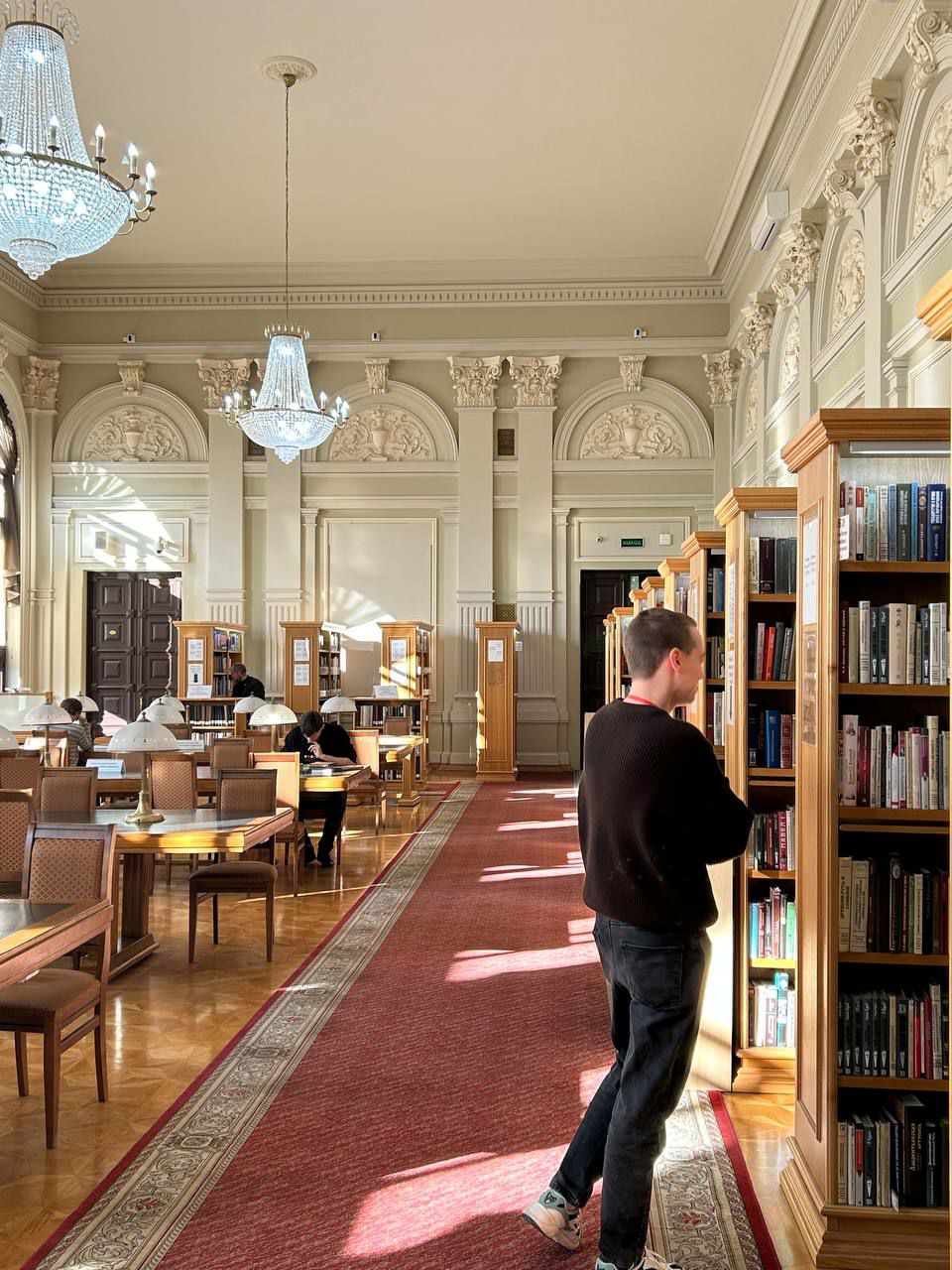 Вместе с преподавателем Филологического факультета Иваном Москалевым студенты 1 курса посетили Государственную публичную историческую библиотеку России и совместили занятие по английскому языку с экскурсией по библиотеке.