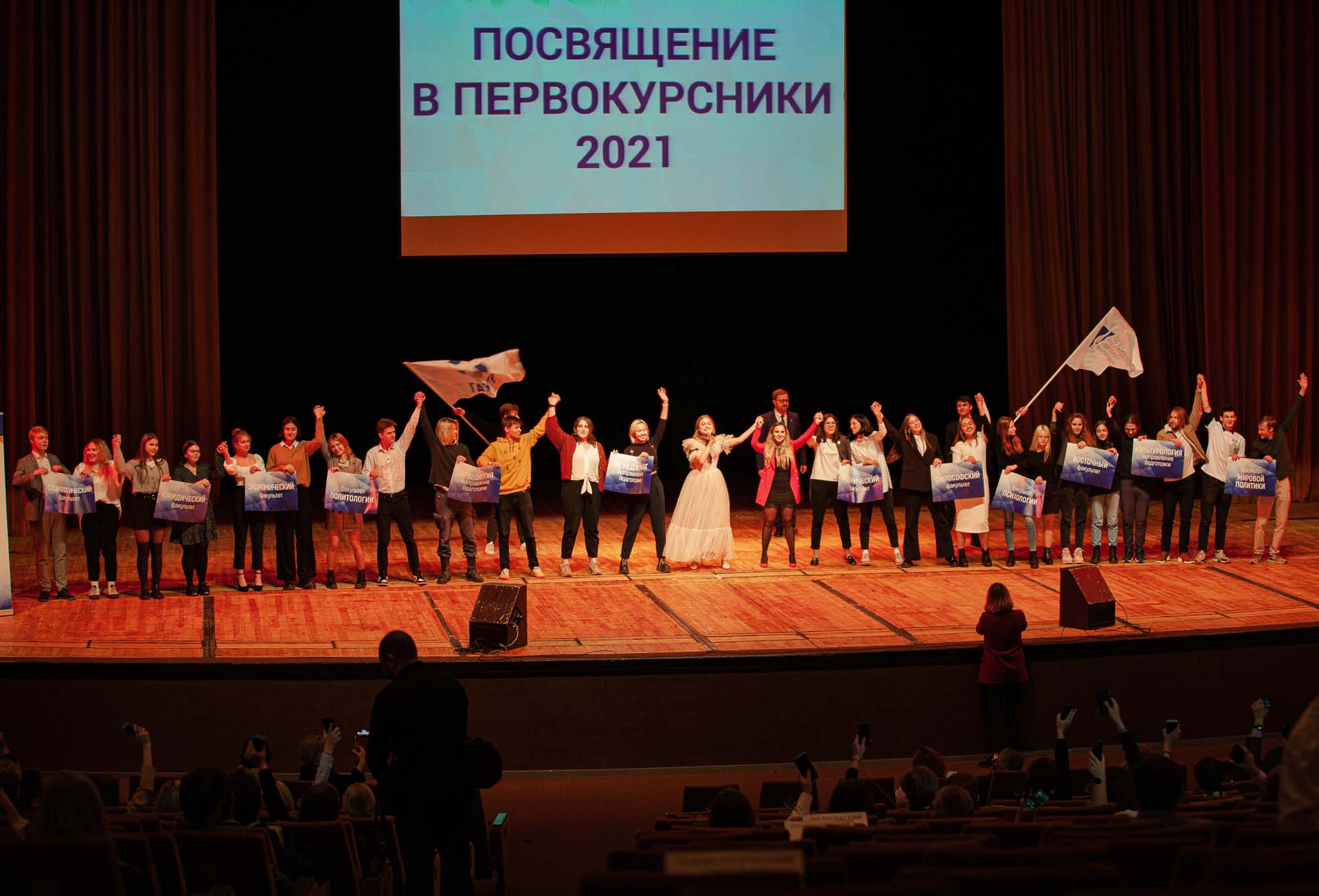 Программа посвящения в студенты включала в себя вручение призов победителям математической олимпиады для гуманитариев и олимпиады по английскому языку, победителям конкурса от Центра молодежной политики, а также розыгрыш подарков от ГАУГН.