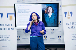 На встрече заместитель декана Философского факультета Екатерина Алексеева рассказала об истории Факультета с 1994 года.