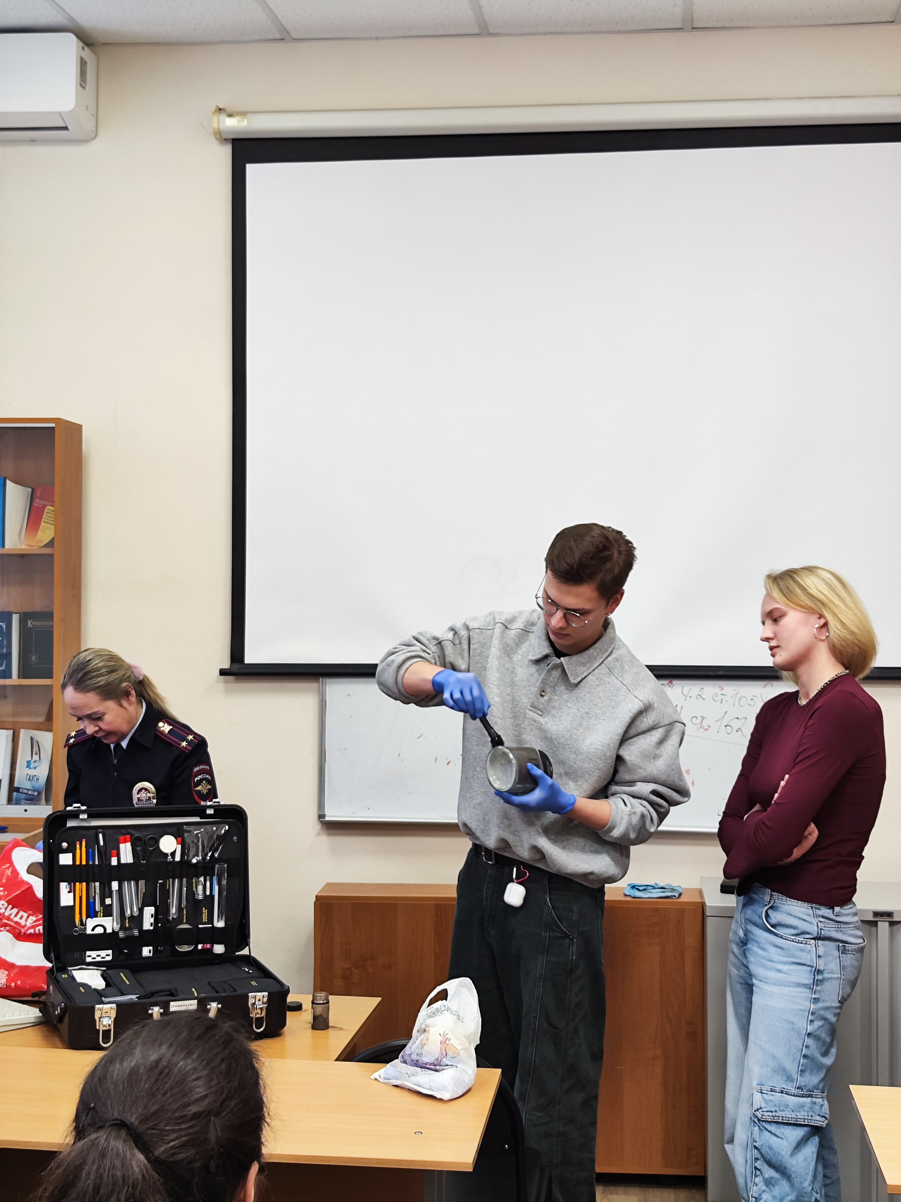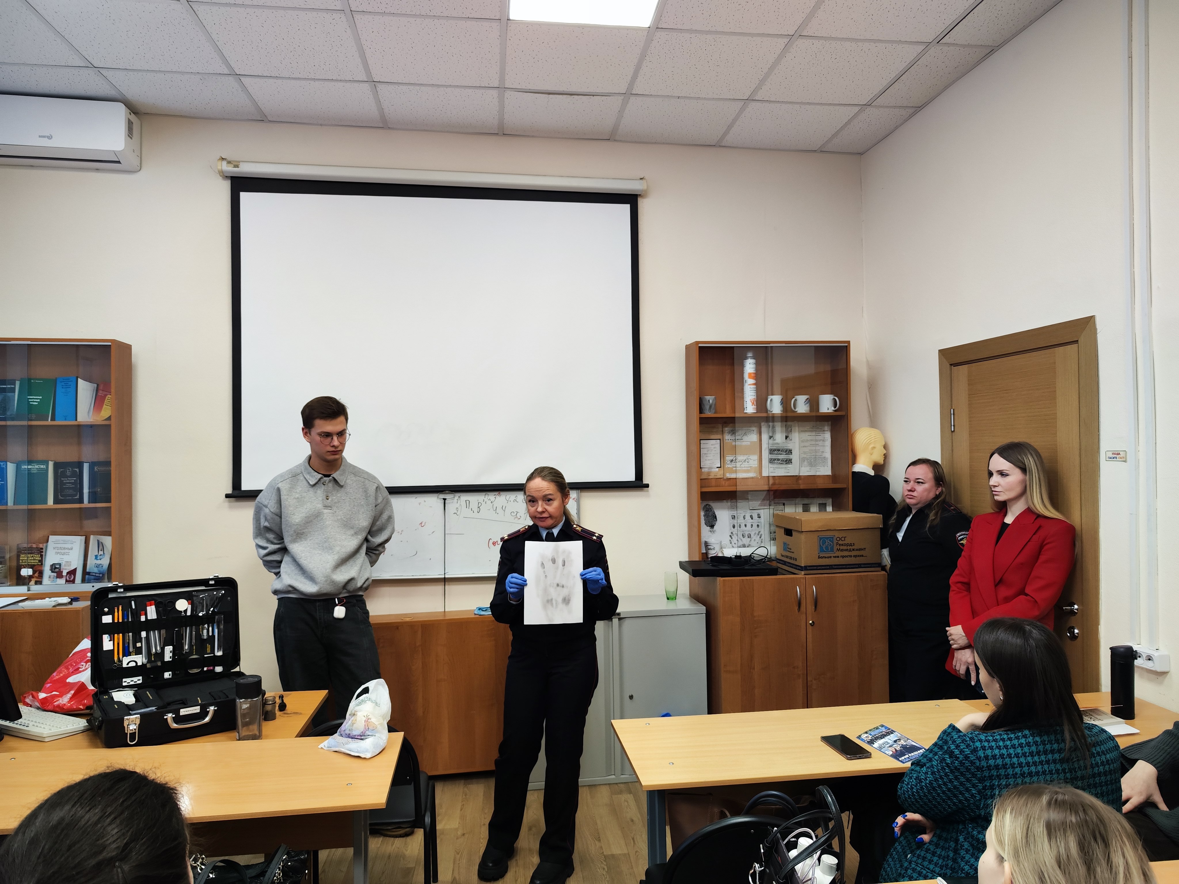 В ходе мастер-класса по дактилоскопии студенты смогли попробовать себя в роли экспертов-криминалистов, сняв отпечатки пальцев с предметов и документов, и задали множество интересующих их вопросов.