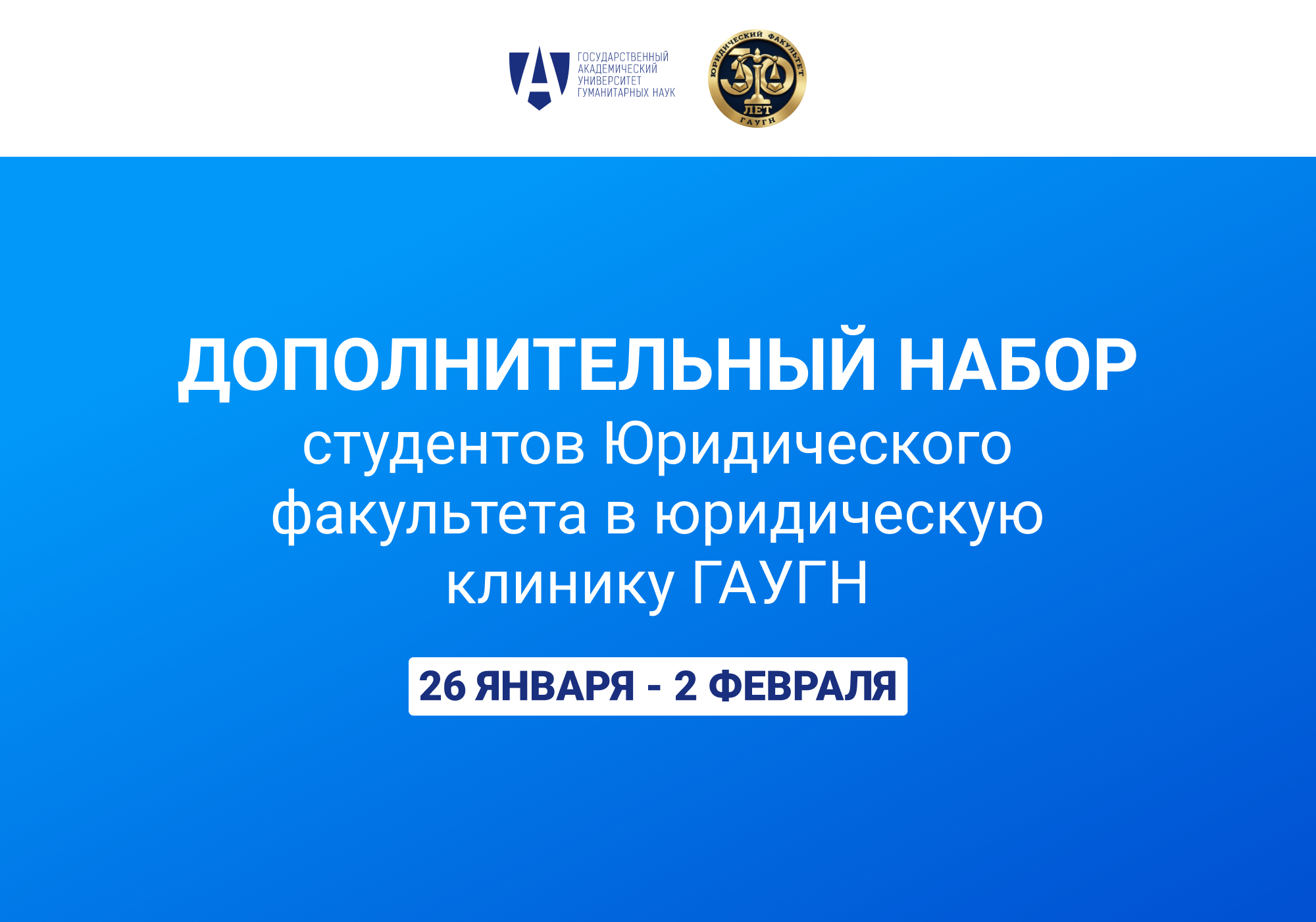 Дополнительный набор студентов Юридического факультета в юридическую клинику ГАУГН