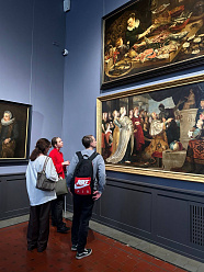 В этот раз студентов 1 курса Филологического факультета ГАУГН ждал лингвистический квест в Государственном музее изобразительных искусств им. А.С. Пушкина. Под руководством преподавателя Ивана Москалева студенты выполняли разнообразные задания на английском языке, которые требовали не только внимания и наблюдательности, но и главное — знаний английского языка.